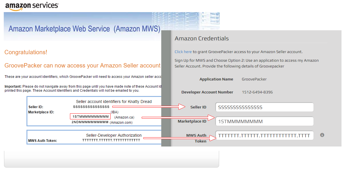 You'll need to create a GroovePacker store for each Marketplace and also include the "MWS Auth Token" which is provided along with the other API account details.