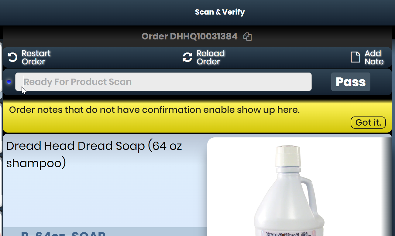 Rather than writing a note on the packing slip this notes can be delivered with a digital sticky note during the scanning of the order. It's also possible to require a confirmation step so that the user can confirm they have seen mission-critical notes.